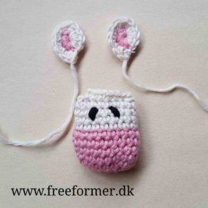 Hovedet hækles med enkelt garn og nål 2,5.