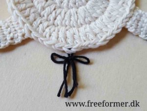 Lav en hale. Her er den lavet af 2 tråde på ca 14 cm, som er bundet til en hale med sløjfe